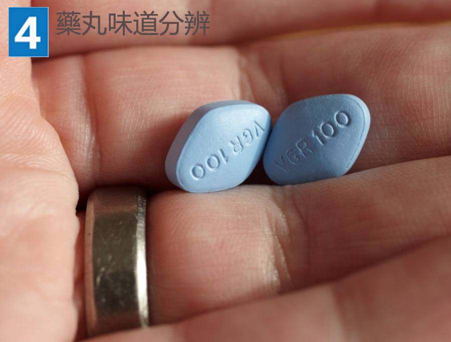 此外,民眾可以將藥丸切開,然後用舌頭輕舔裡面的白色成份,正品的威而鋼舔完後舌頭會變麻,還有一絲苦澀感,這是西地那非的特性。而偽藥輕舔上去則有甜味以及不會出現麻木感,之所以出現甜味,藥師猜測是偽藥成份含有澱粉以及糖的緣故。對於這類偽藥不會對身體產生危害,自然也沒有效果;而另外一種偽藥則有效,但藥師將藥丸拿去化驗後,發現西地那非的含量遠遠超標(遠超正常劑量5倍),如果在不知情的情況下服用,很難想象會發生什麼危險!